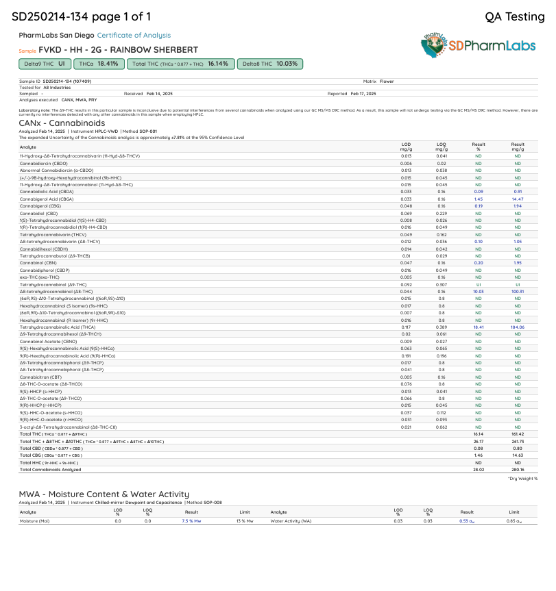 Rainbow Sherbert (Indica) – FVKD THCA Diamond Infused Hash Holez PRE-ROLLZ (2ct/2g each)